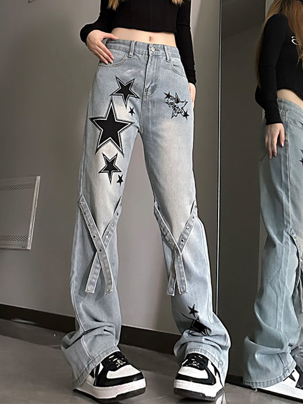Vaqueros holgados con microaltavoz de color claro retro