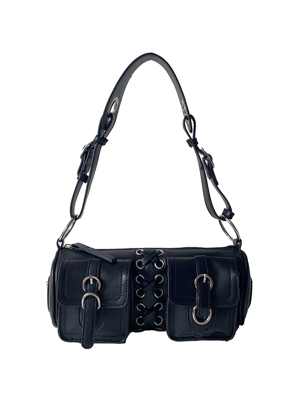 Bolso cilíndrico para debajo del brazo con correa de amarre