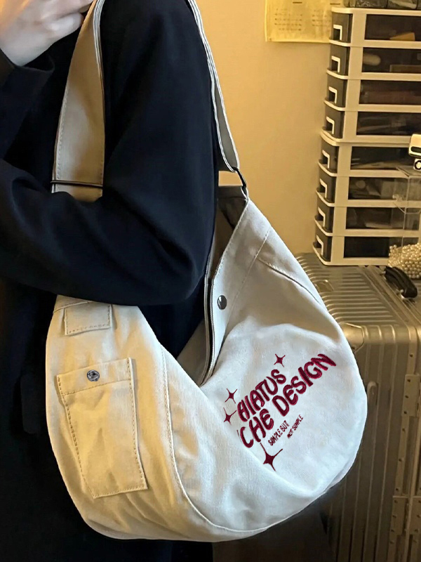 Bandolera grande de lona bordada