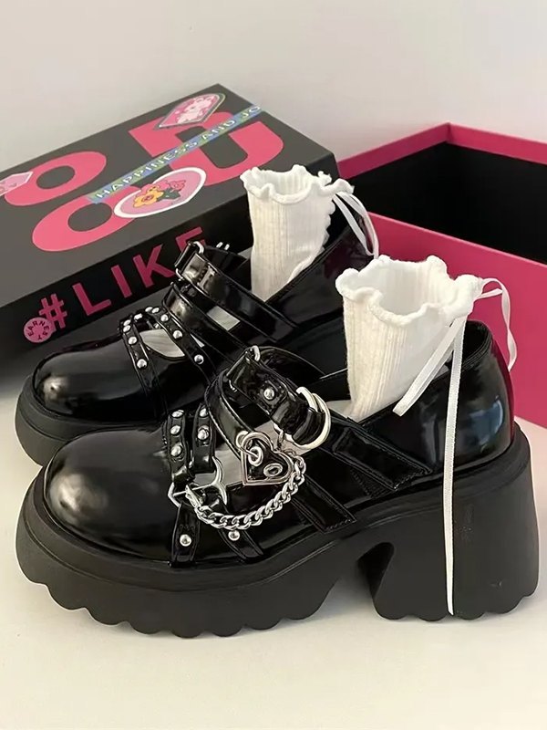 Tacones altos con plataforma de cadena de corazón