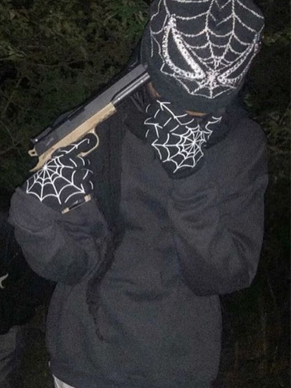 Gorro beanie adornado con diamantes de imitación y estampado de telaraña