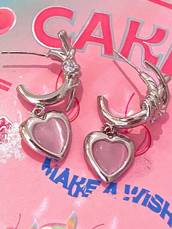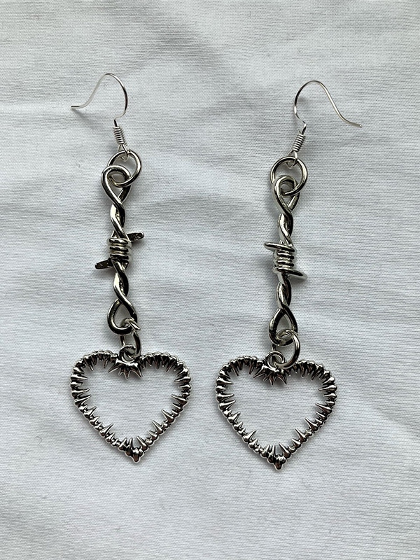 Aretes de corchete con amuleto recortado de corazón de espina