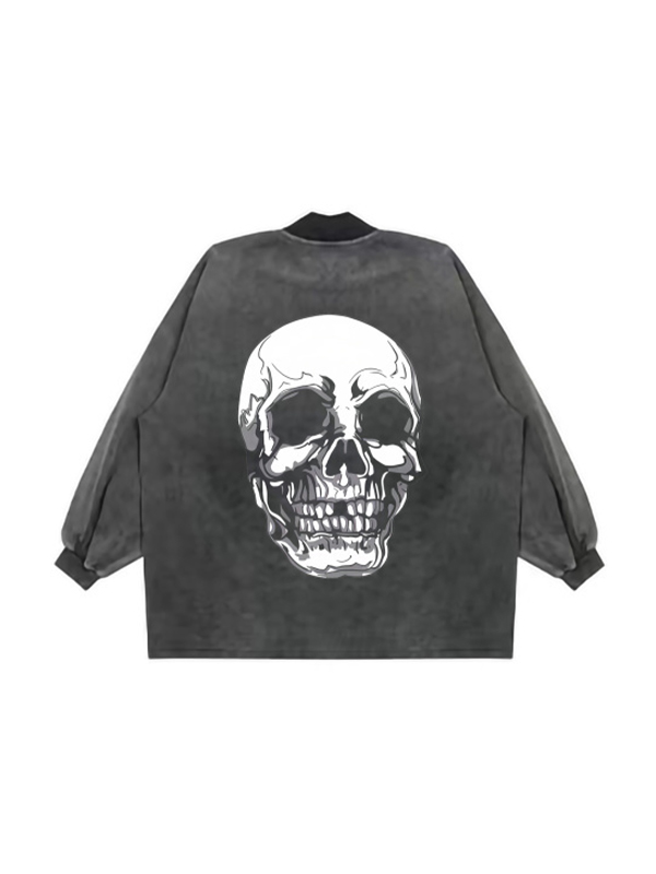 Sudadera con capucha extragrande con estampado de calavera desgastada Hip Pop para hombre