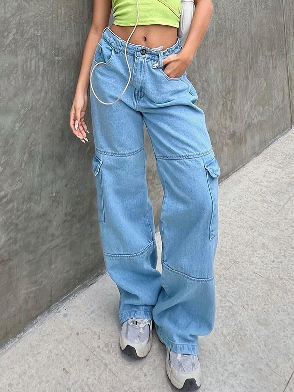 Vaqueros holgados con piernas anchas, color azul, holgado, retro japonés
