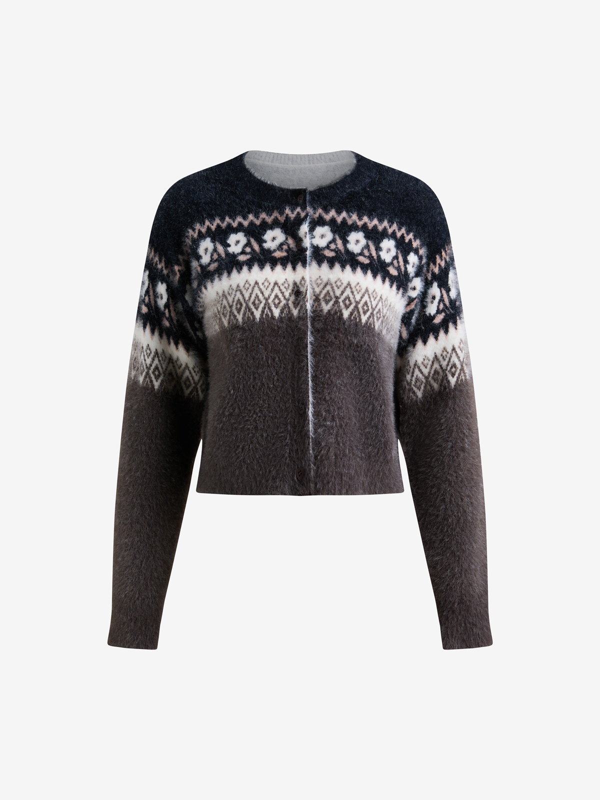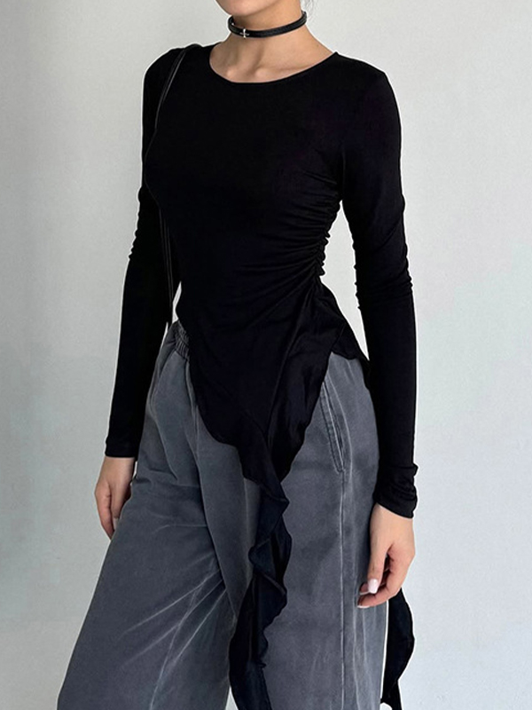 Jersey de punto con mangas largas y estampado floral y un solo hombro con mangas acampanadas