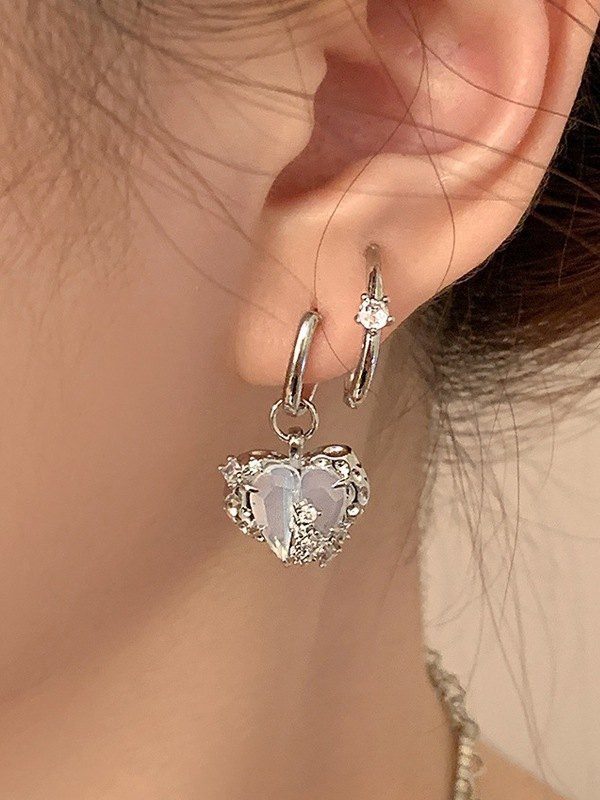 Pendientes con colgante de corazón de circón y diamantes de imitación