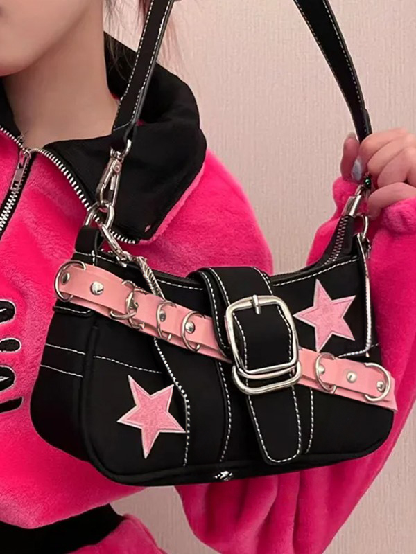 Bolso de hombro con hebilla de estrella y diseño de cadena