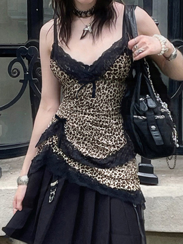 Top de tirantes con estampado de leopardo y retazos de encaje