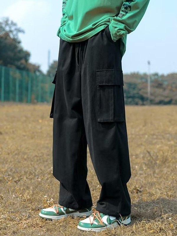 Pantalones cargo casuales sueltos con bolsillo lateral retro para hombre