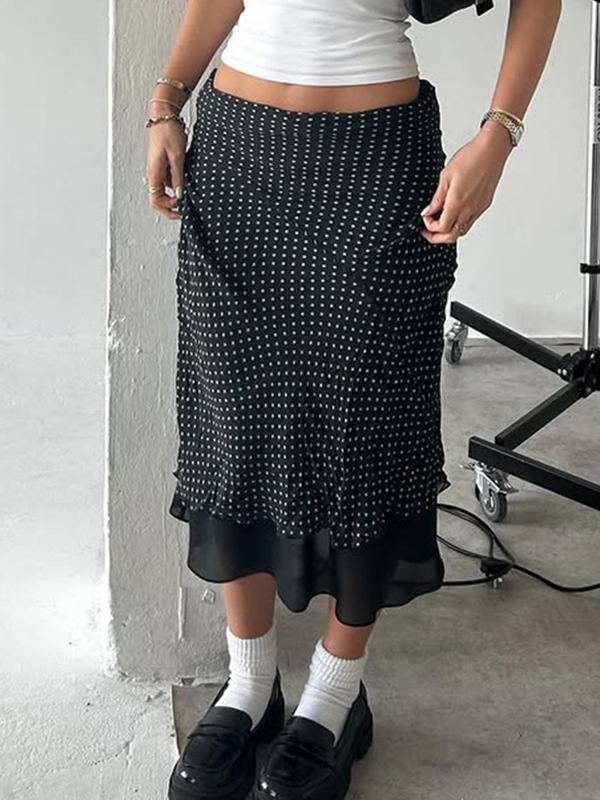 Falda larga con estampado de lunares retro de moda