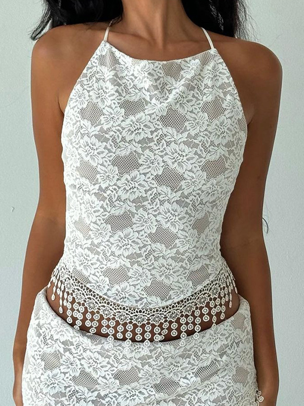 Chaleco halter con borlas y cuello de encaje