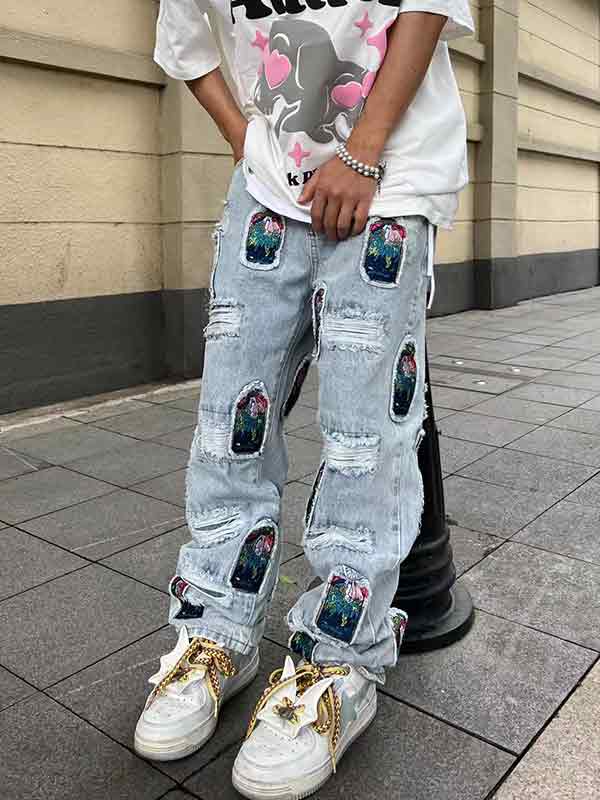 Jeans sueltos de mezclilla vintage desgastados para hombre