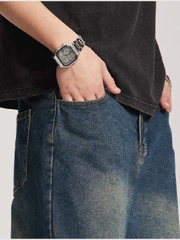Vaqueros sueltos rectos lavados de moda