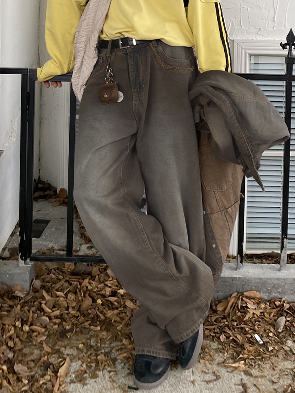 Vaqueros holgados con ribete crudo y lavado vintage para hombre
