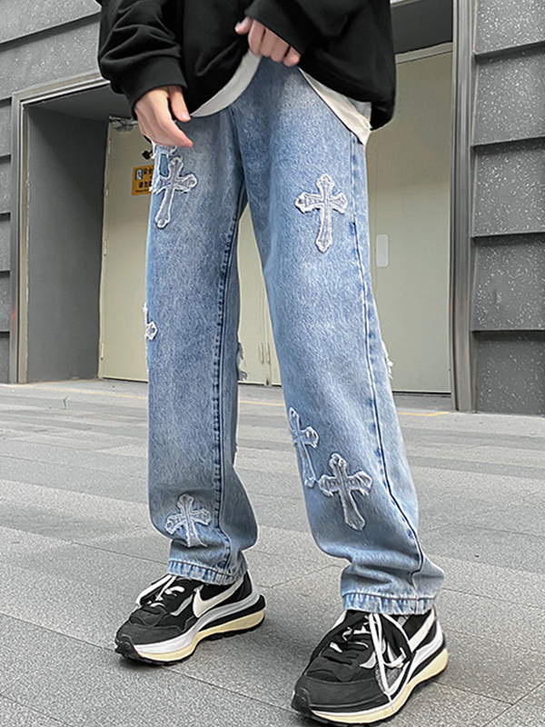 Jeans de pierna recta cruzada para hombre