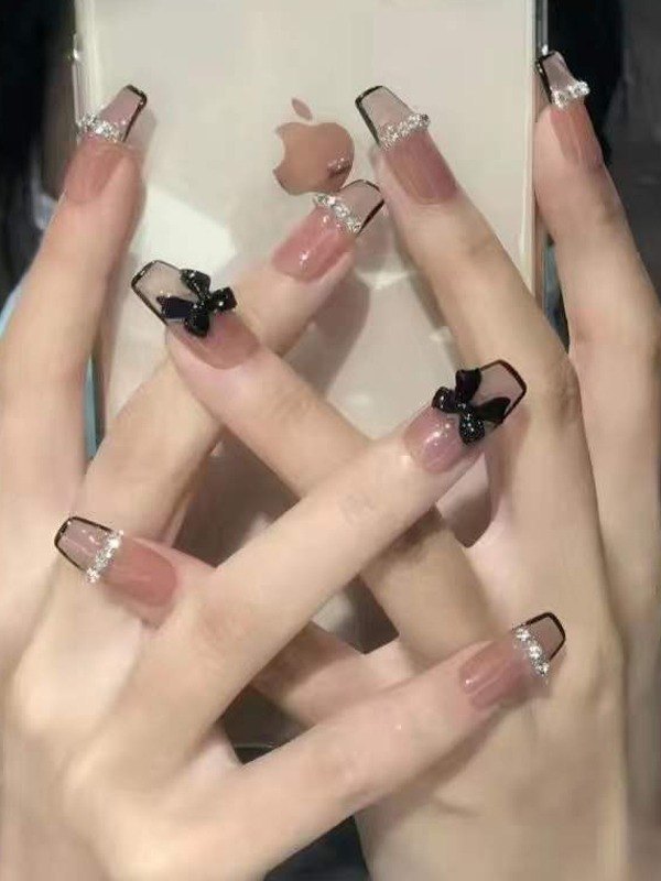 24 piezas de decoración de lazo de cadena de diamantes de imitación prensa en las uñas