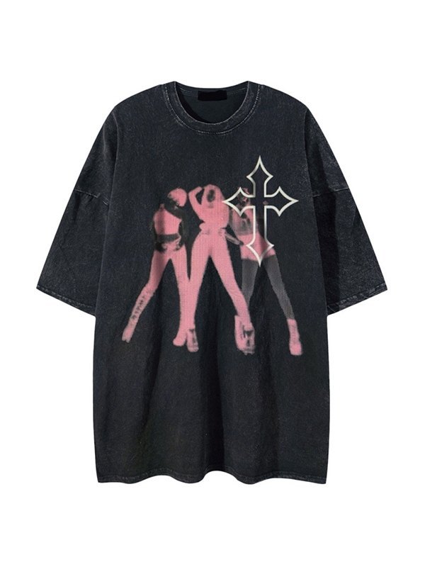 Camiseta de manga corta con cruz de figura vintage para hombre