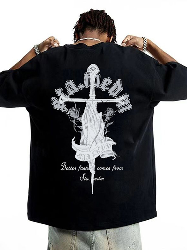 Camiseta extragrande de manga corta con estampado callejero para hombre