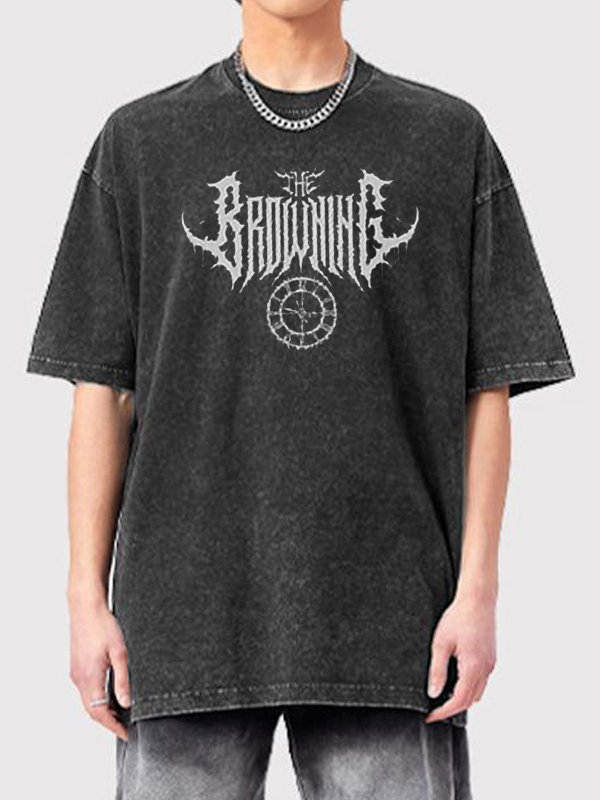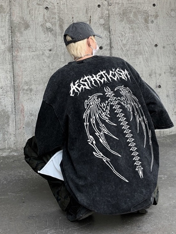 Camiseta de manga corta extragrande lavada con estampado oscuro para hombre
