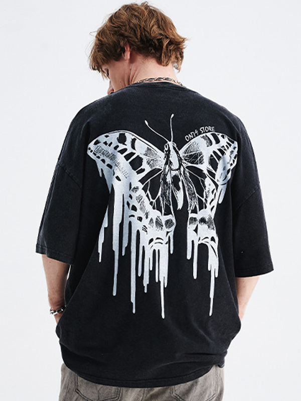 Camiseta extragrande de manga corta con estampado de alas para hombre