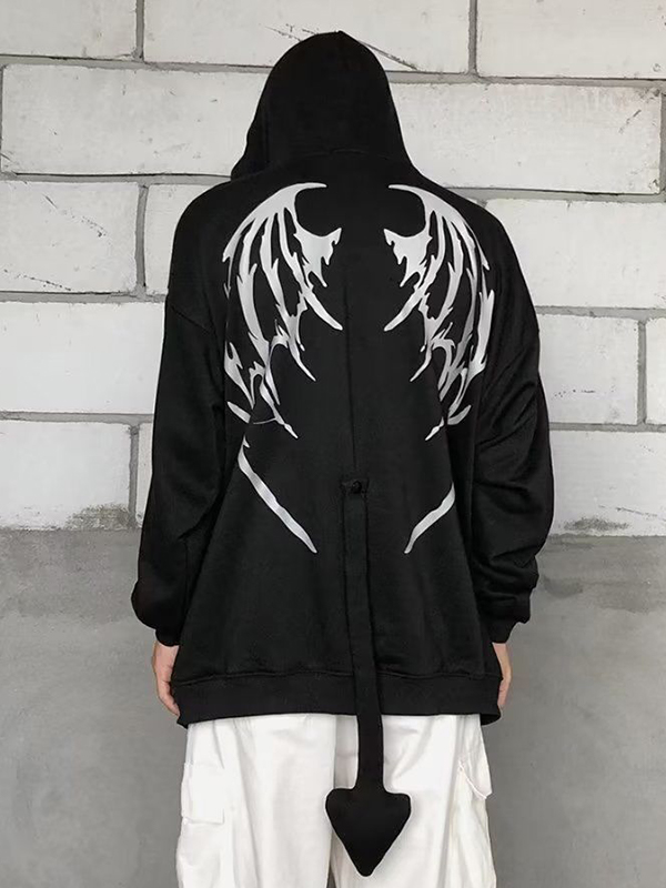 Sudadera con capucha extragrande de tejido Fleece con estampado de alas Devil Styling para hombre