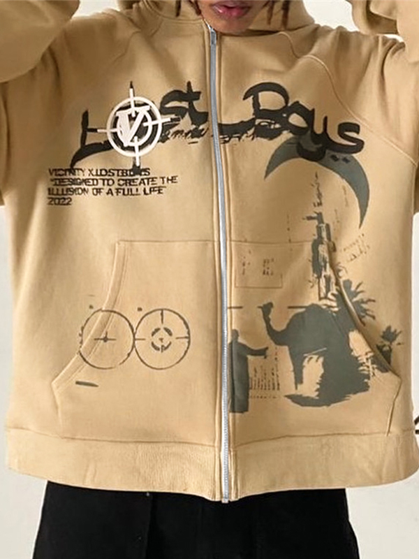 Sudadera extragrande con cremallera y estampado de calle para hombre