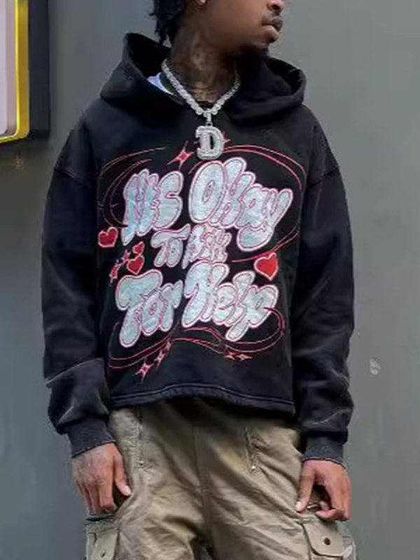 Sudadera con capucha extragrande con estampado de letras Hip Pop para hombre