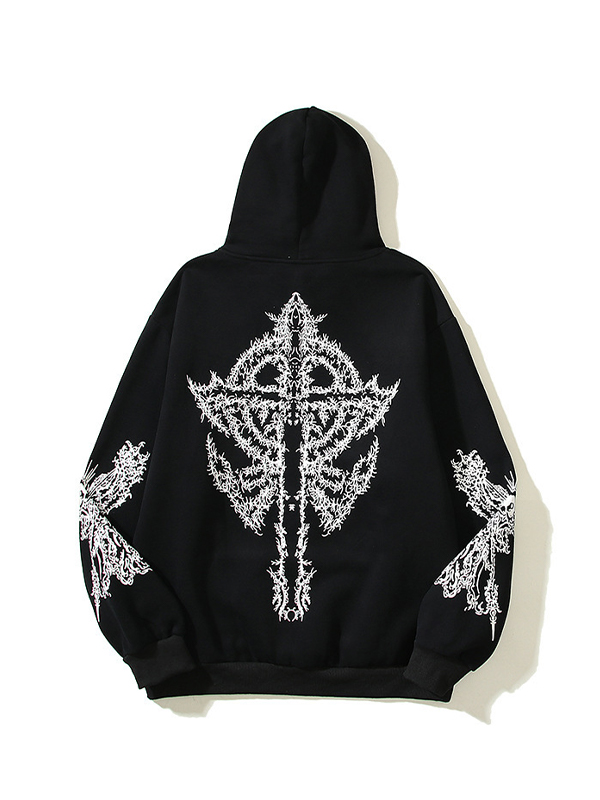 Sudadera extragrande con capucha y estampado de calavera cruzada Hip Pop para hombre
