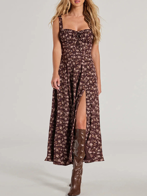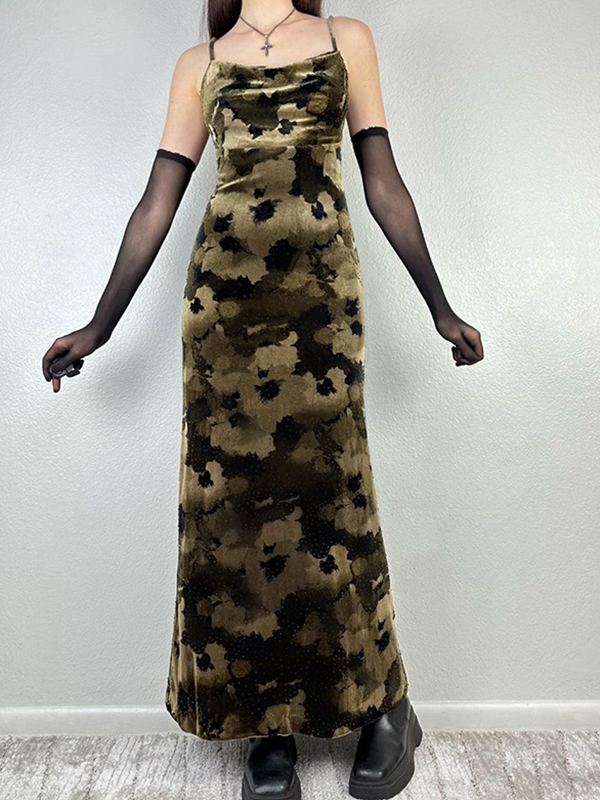 Vestido maxi ajustado sin espalda con estampado floral