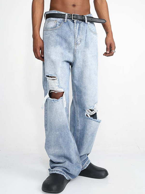 Diseño de bigotes de gato perforados trapeando el piso Jeans rasgados