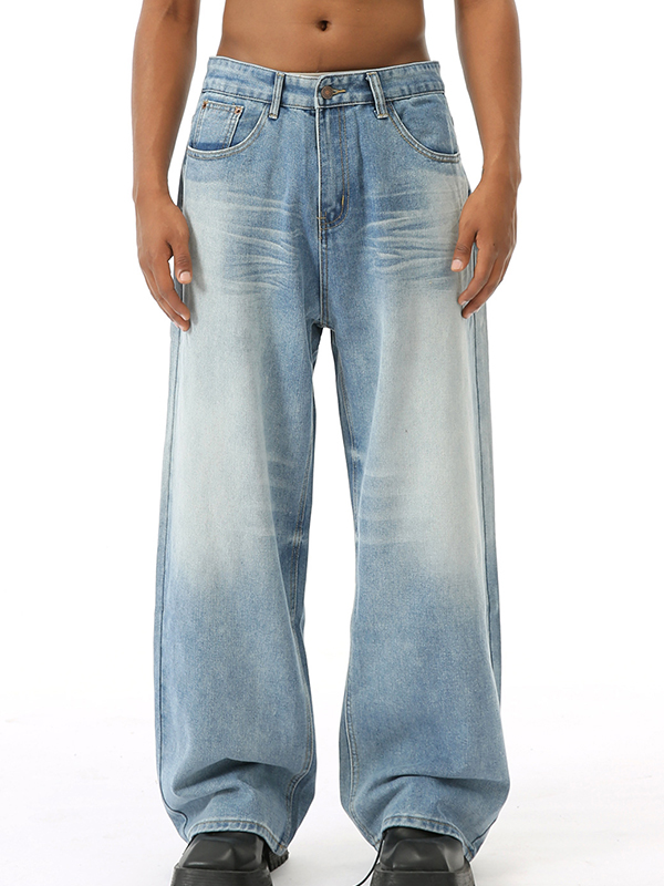 Vaqueros holgados de lavado blanco pulido estilo retro de Hong Kong