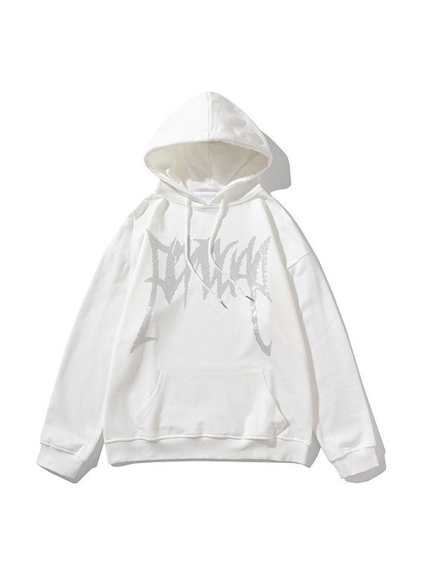 Sudadera con capucha gótica con estampado de diamantes de imitación para hombre