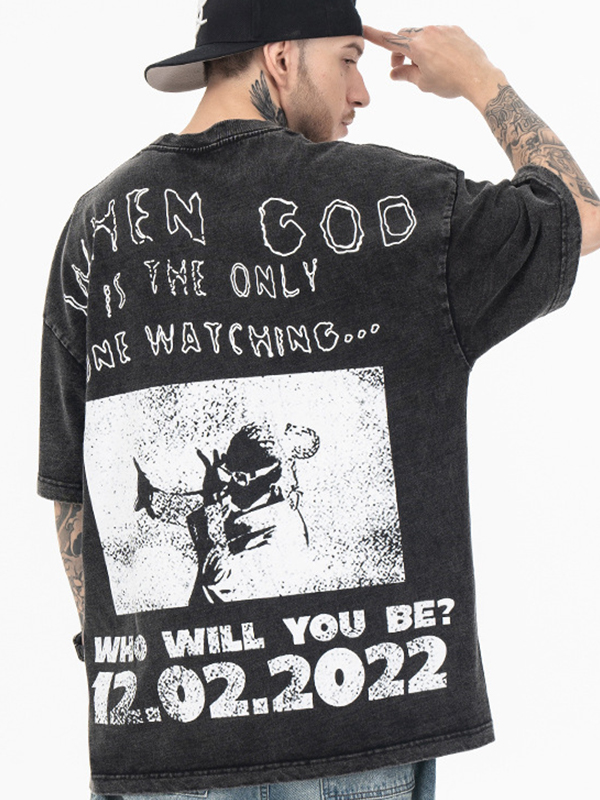 Camiseta extragrande de manga corta con estampado oscuro para hombre