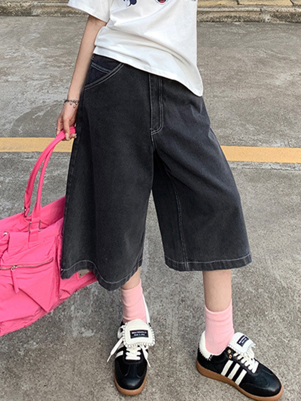 Pantalones cortos vaqueros holgados estilo vintage americano