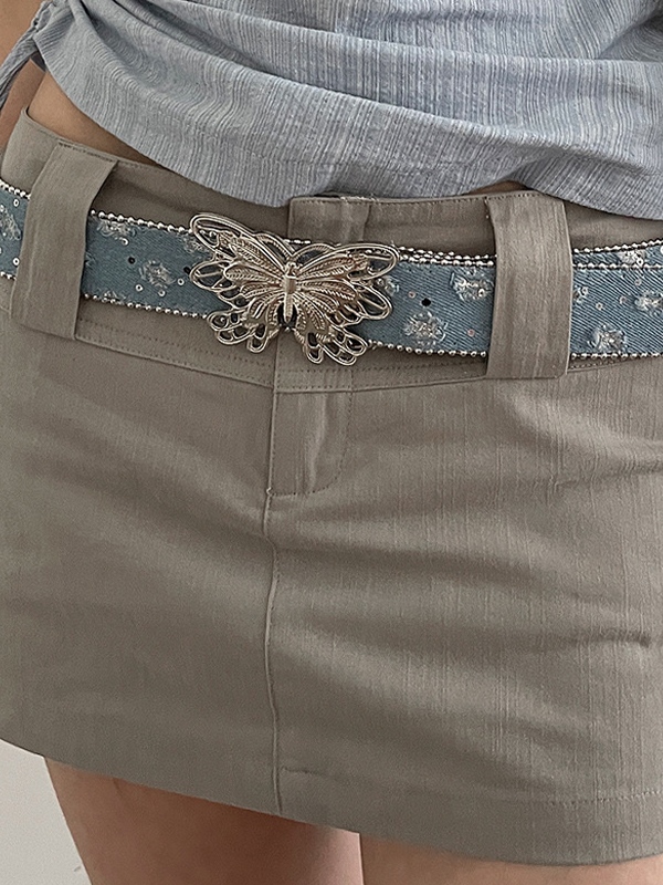 Cinturón de lona con hebilla de mariposa adornada con lentejuelas