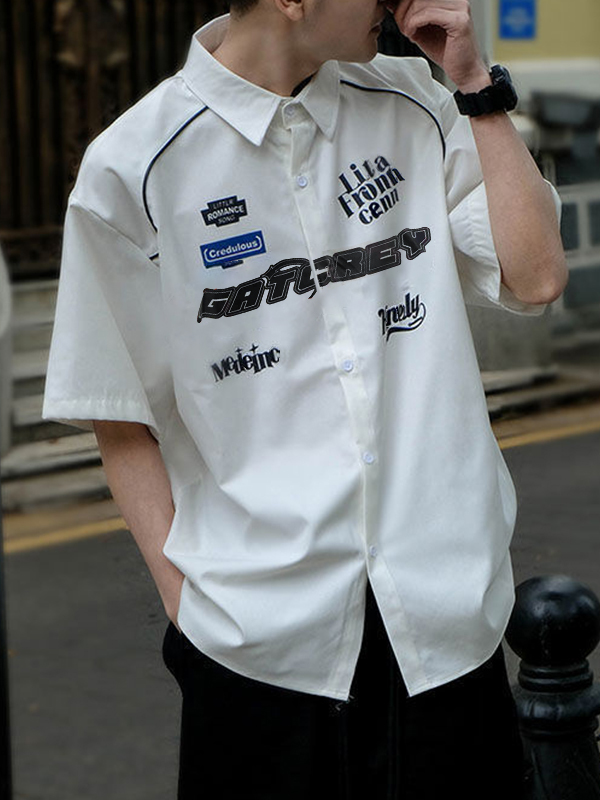 Camisa de manga corta de motociclista con logo vintage para hombre