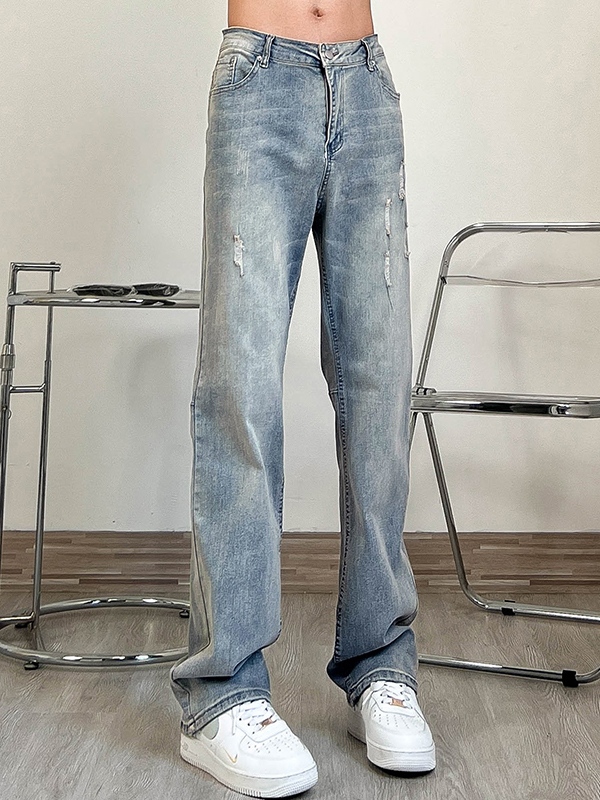 Vaqueros sueltos rasgados con lavado desgastado para hombre