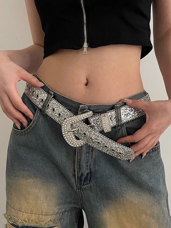 Cinturón con hebilla de diamantes de imitación de lentejuelas Y2K