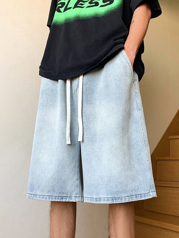 Shorts de mezclilla de corte holgado con lavado básico para hombre