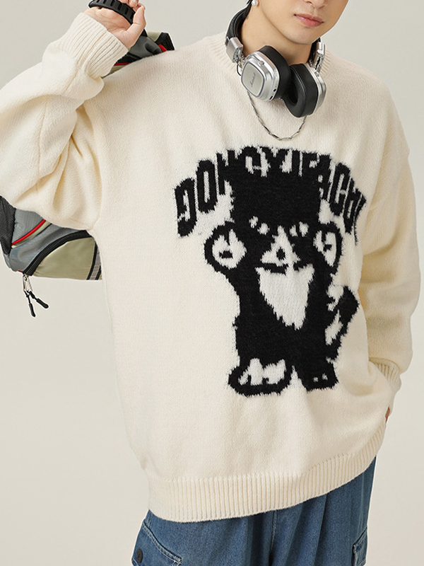 Suéter de cuello redondo de imitación de visón pintado a mano con dibujos animados