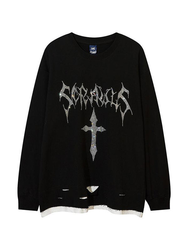 Sudadera con agujeros en forma de cruz y diamantes de imitación