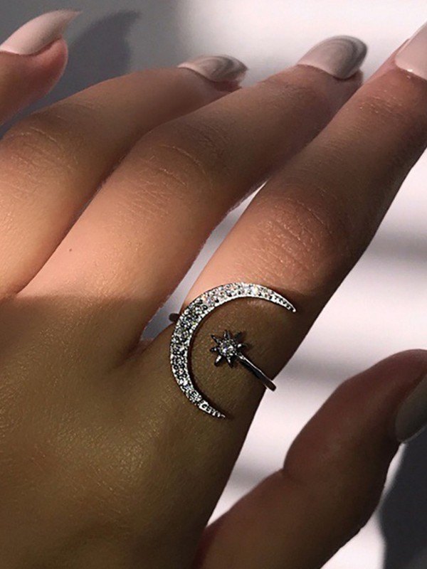 Anillo de puño de luna creciente con diamantes de imitación