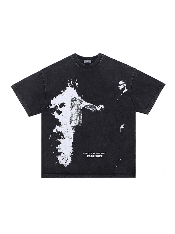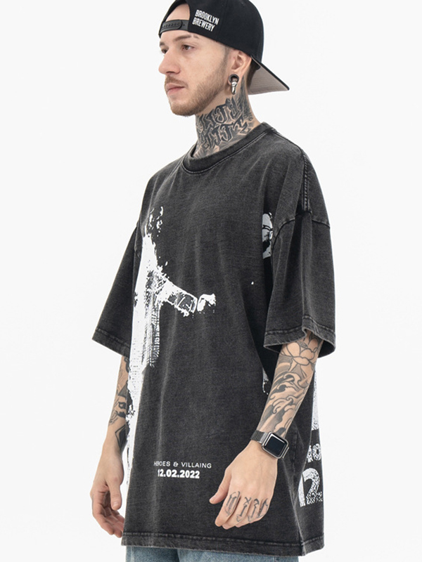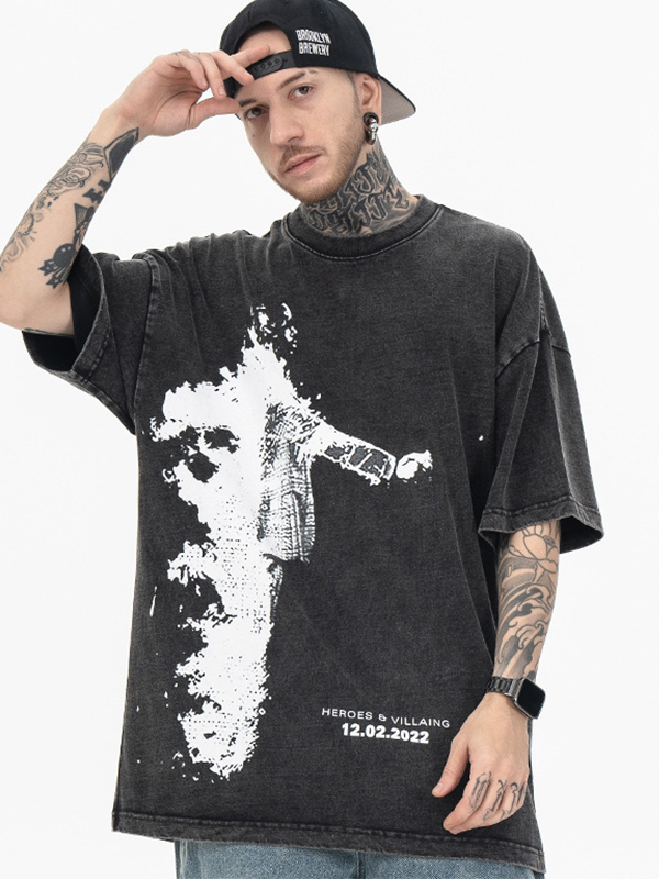 Camiseta extragrande de manga corta con estampado oscuro para hombre
