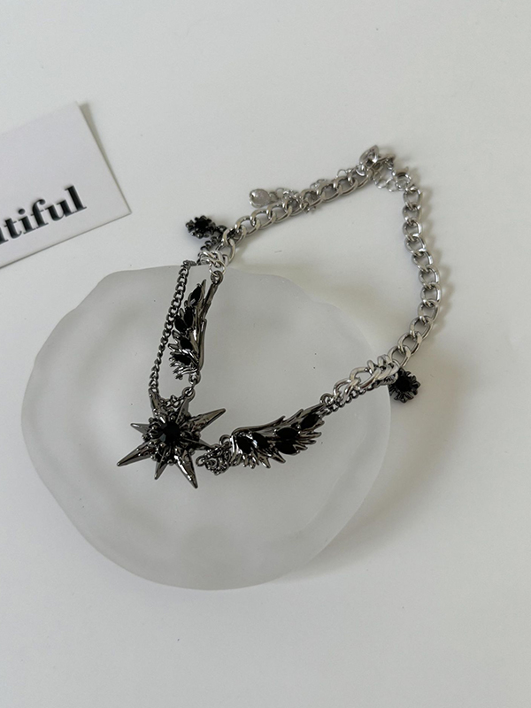Collar de doble capa con alas de gemas en negro de Street