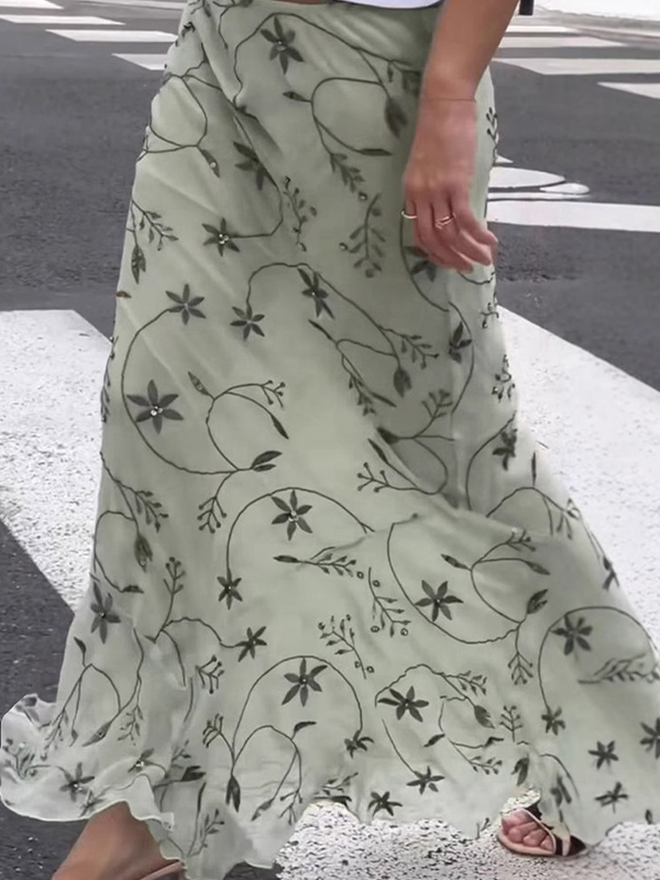 Falda larga de punto con flores de estilo suave
