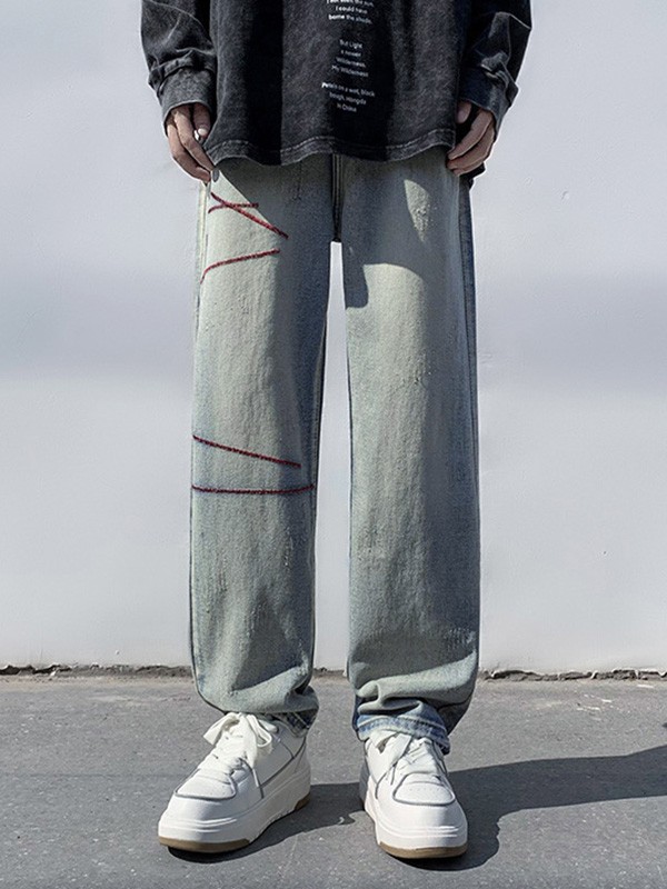 Jeans rectos desgastados cosidos para hombre