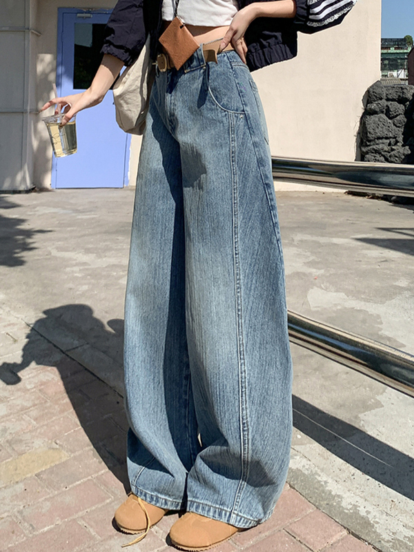 Vaqueros boyfriend casuales con pernera ancha y corte hoz
