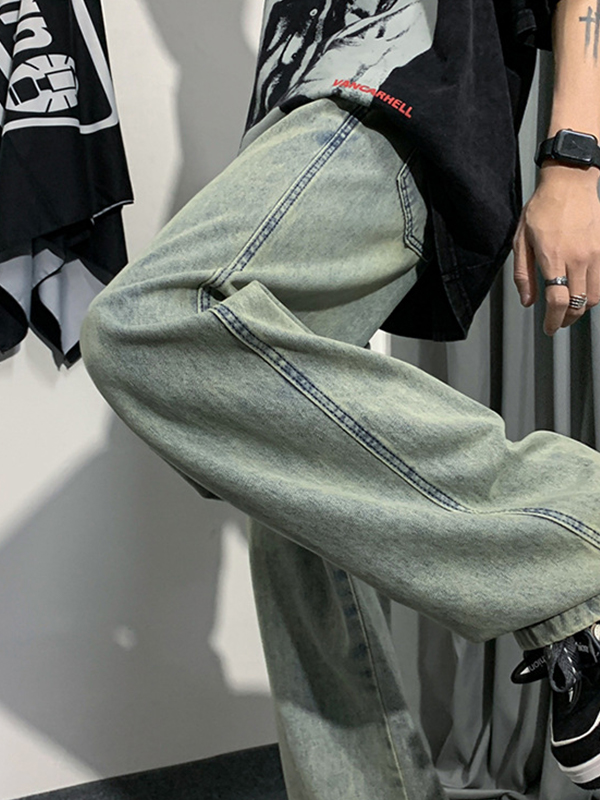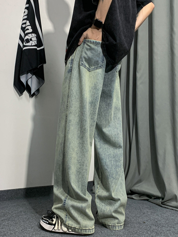 Vaqueros holgados de pierna recta con lavado vintage para hombre