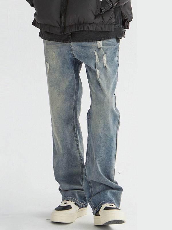 Diseño único: Los jeans presentan un diseño desgastado y lavado con detalles rasgados , dándole un toque de estilo callejero.